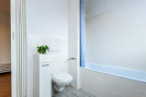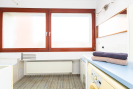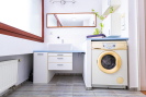Kuchyňská linka je vybavena vestavnými spotřebiči, koupelna s vanou je prostorná a má místo pro pračku i úložné skříňky. V bytě je dostatek úložného prostoru a k jednotce náleží i praktický sklepní prostor.