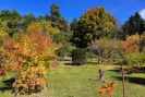 Vzrostlé ovocné stromy, užitkové i okrasné keře a další bujná zeleň.