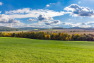 Mírný jihozápadní svah, otevřený výhled do krajiny.