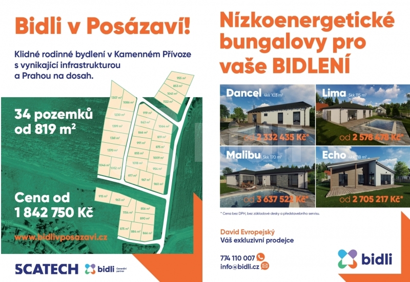 Bidli v Posázaví představuje bydlení v nízkoenergetických kvalitních domech vysokého standardu o dispozici 3+kk až 6+kk v Kamenném Přívoze. Ideální lokalita pro rodiny s dětmi s Prahou na dosah.