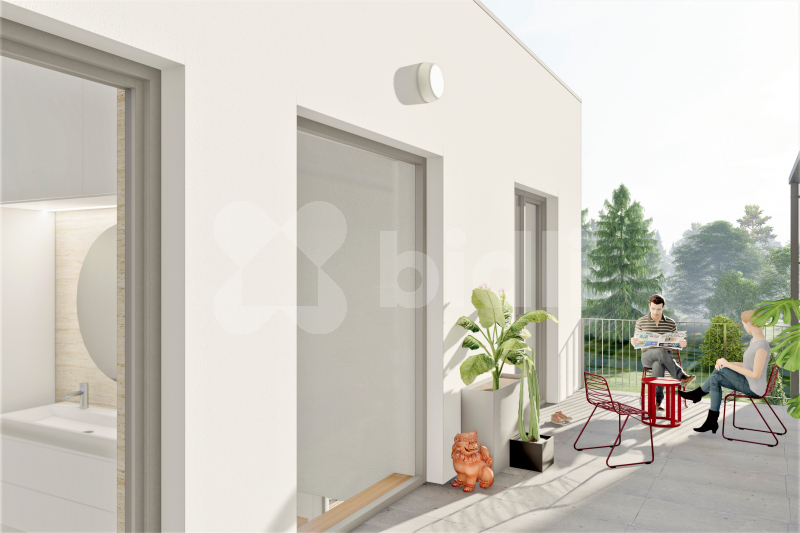 V přízemí domů se nachází samostatná kuchyně s jídelnou a obývací pokoj s přímým vstupem na zahradu. V patře jsou 3 neprůchozí pokoje s prostornou koupelnou a s terasou.