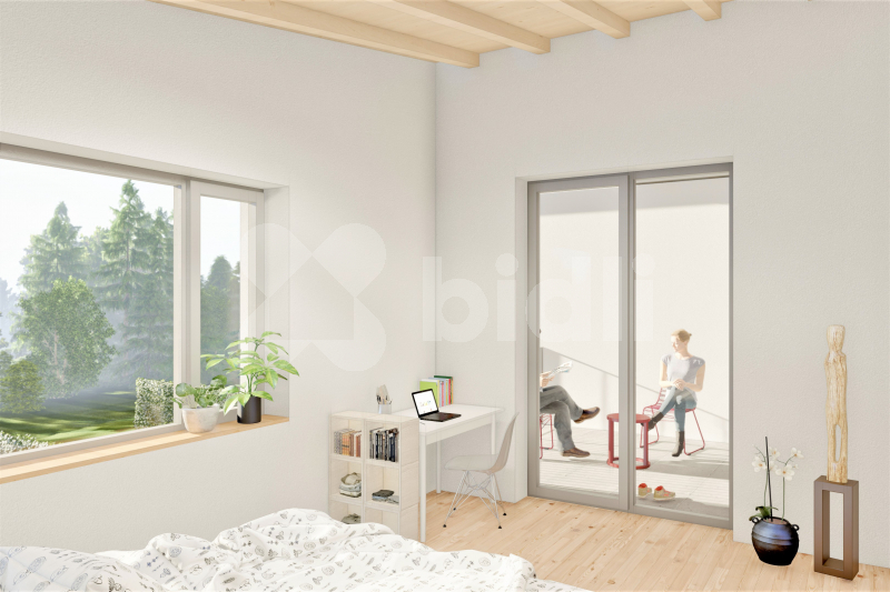 Pultová střecha je navržena tak, aby co nejméně stínila domu sousednímu, což zajišťuje světlost interiérů.