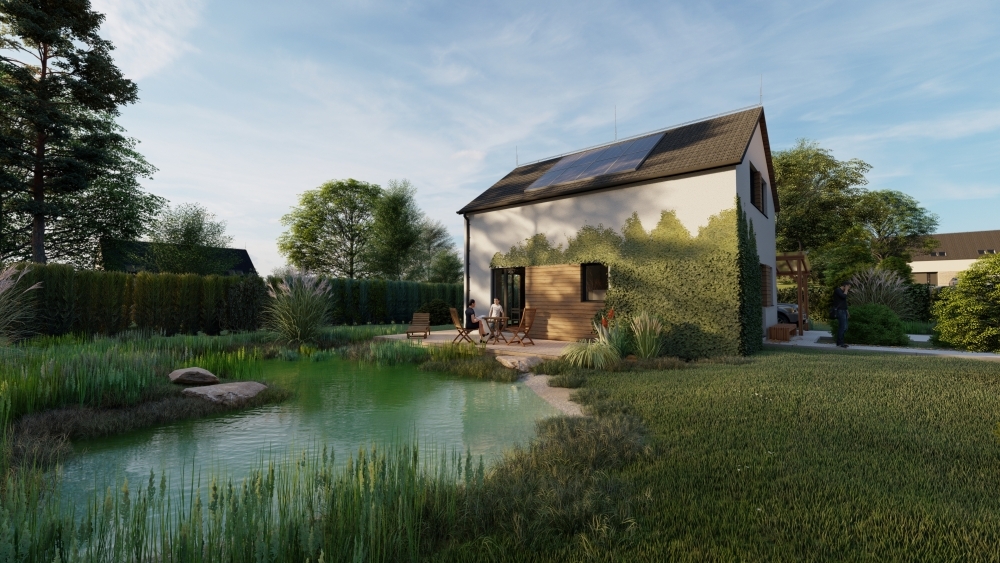 18 bytových jednotek 3+kk se zahrádkou, parkovacím stáním a vlastní FVE a 12 zasíťovaných pozemků na stavbu RD.